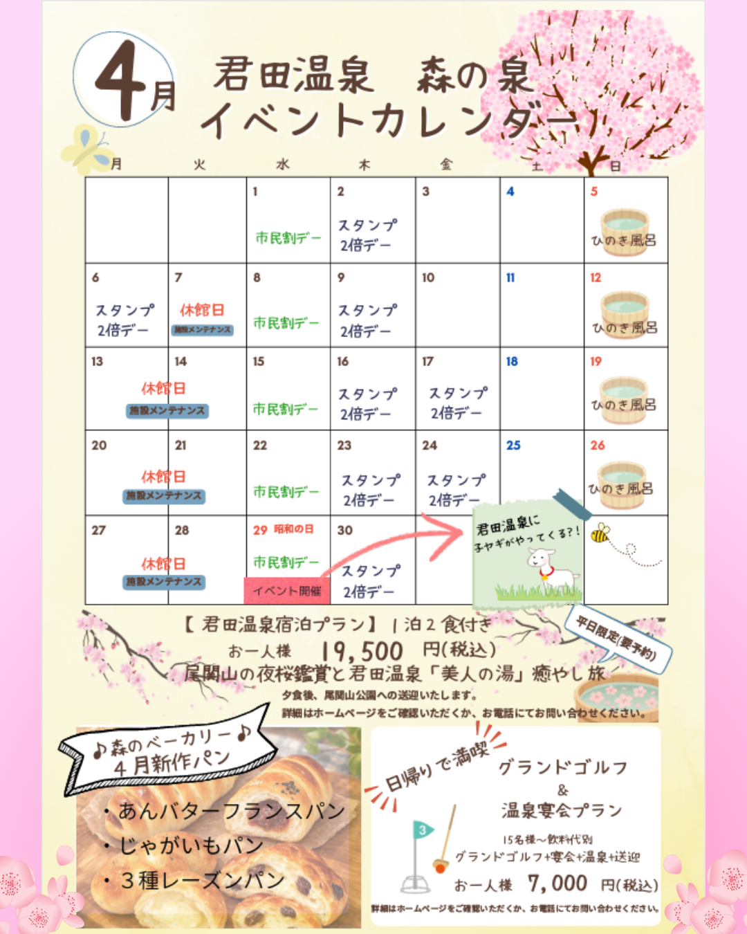 いつも君田温泉森の泉をご利用くださり、ありがとうございます。