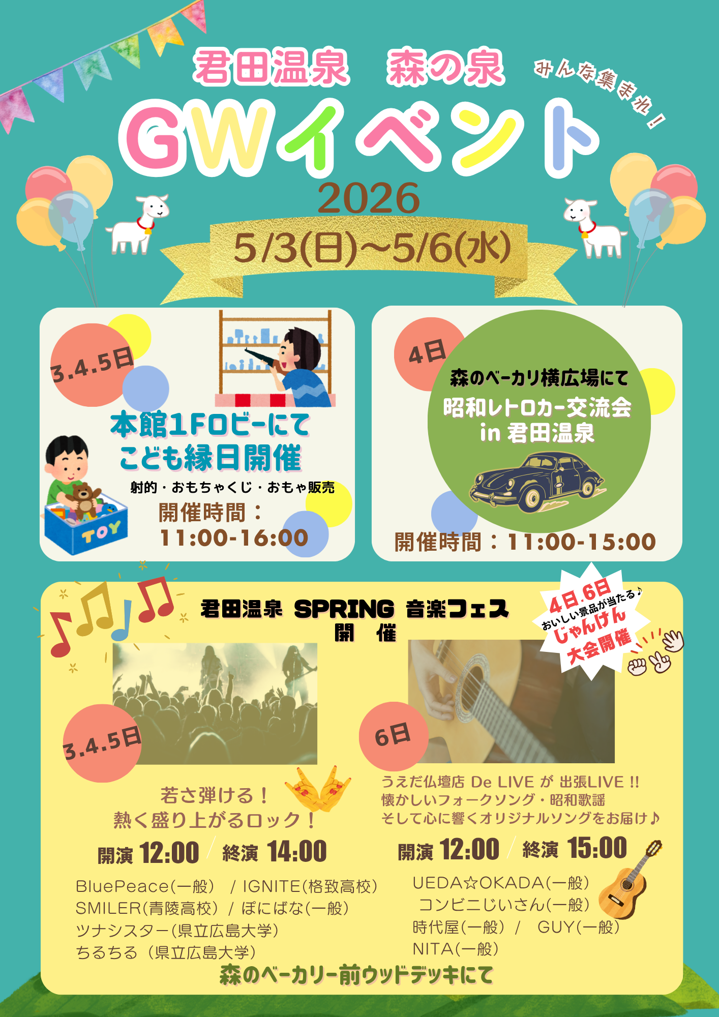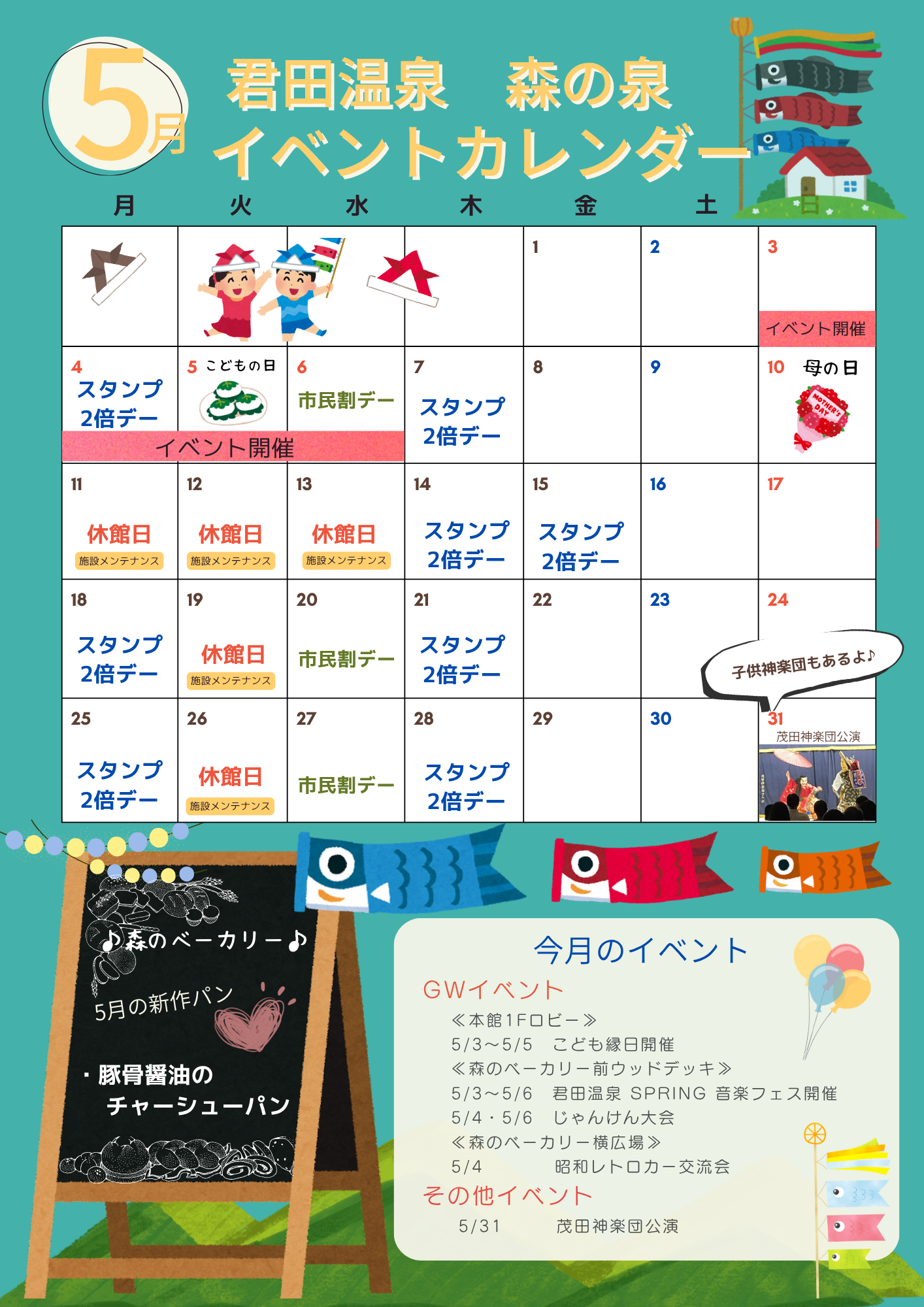 君田温泉では、5月もさまざまなイベントをご用意しております。